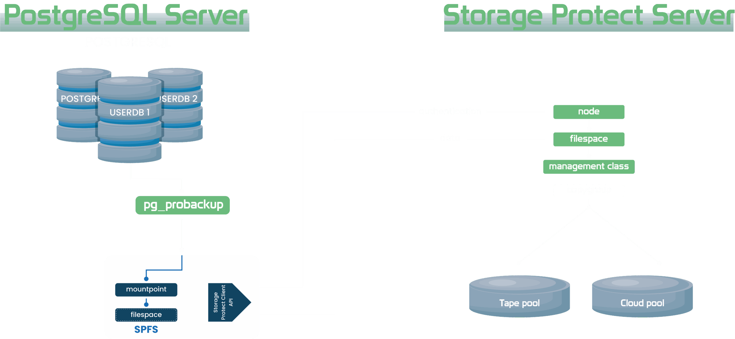 As the backup data is being sent and received by pg_probackup via the mounted path of SPFS using the IBM Storage Protect server storage, it helps shorten the time it take to both backup as well as the time to restore the PostgreSQL data.